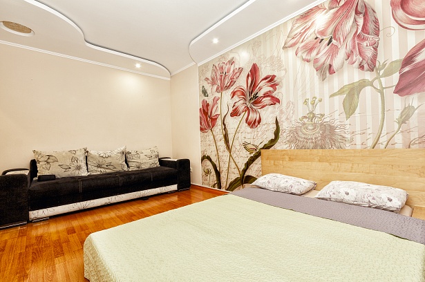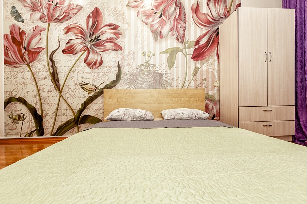 Количество комнат: 1 Максимальное количество гостей: 3 Спальные места: 2+2 (двуспальная кровать и раскладной диван) Интернет: Wi-Fi, 50мБит/сек, безлимитный Этаж: 2 из 4 Лифт: нет Минимальный срок аренды: 2 суток Отчетные документы (квитанции за проживание): предоставляются -